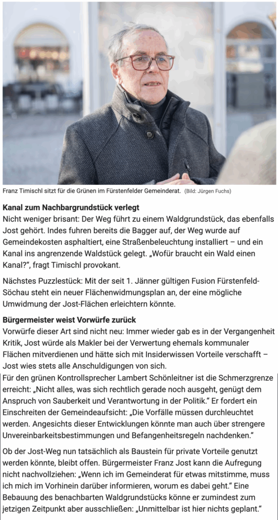 Bei der GR-Sitzung vom 30.6.2025 wurden 874 m2 vom Wald dem „Jostweg“ nach § 15 ff Liegenschaftsteilungsgesetz zugeschrieben.